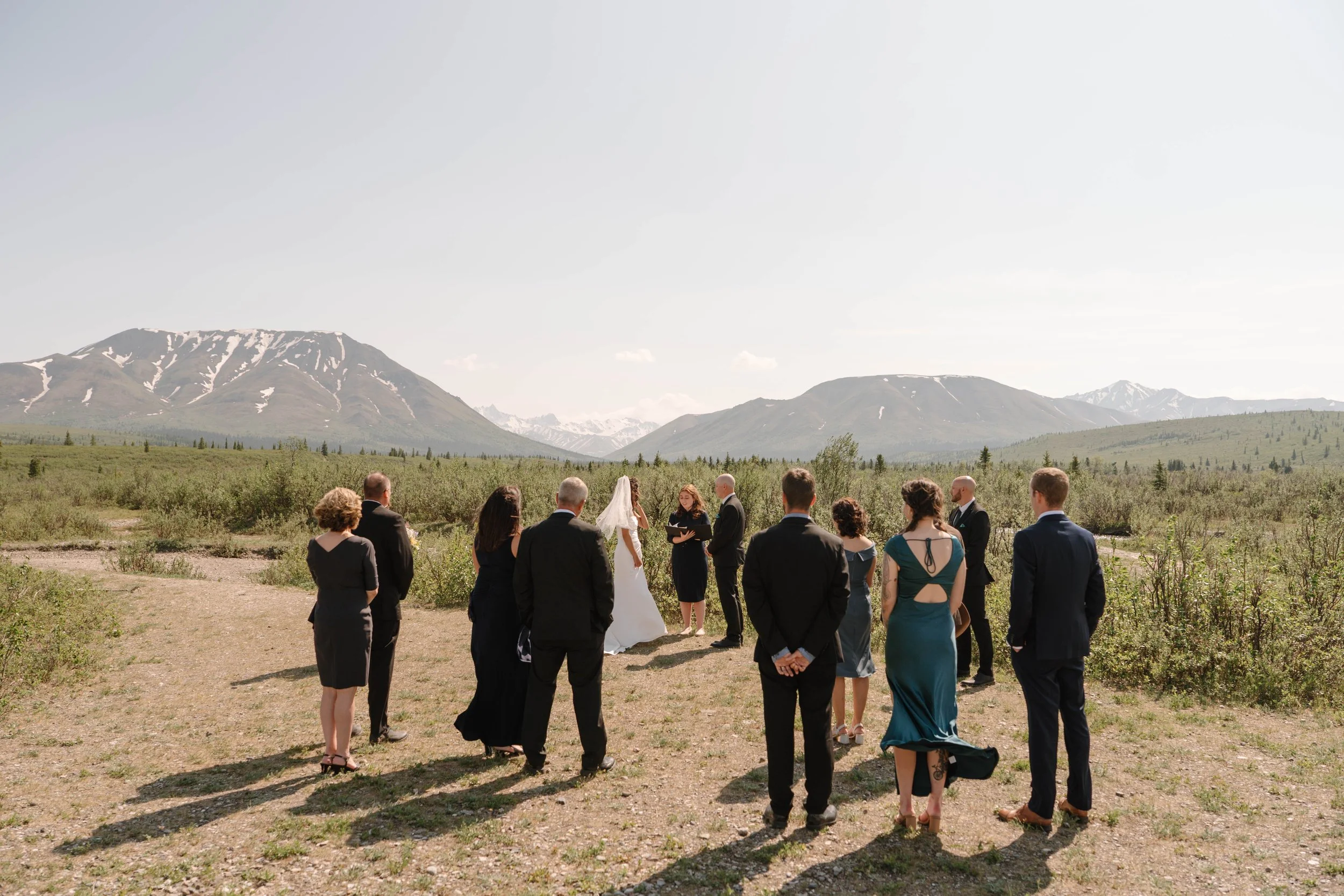 Andrew, Asha, and their dearest family and friends all made the trek to Alaska to celebrate their intimate wedding. After dating for 10+ years (middle school sweethearts… that sure doesn’t happen often!) they decided it was best to get married in one of their very favorite places. Nestled in the trails of Denali National Park, their ceremony began. Tears, contagious laughs, and joy filled smiles were the highlight. Right before their ceremony, we flew up in a helicopter and landed on a glacier. The views were incredible and we took some portraits up there. THE most epic way to fill your wedding day! Before the trip, when Asha reached out to me to see if I was comfortable with going with them and photographing it all, I replied… “are you kidding?!? This is insanely cool!” and agreed quickly. What a memorable day celebrating The Shippells!